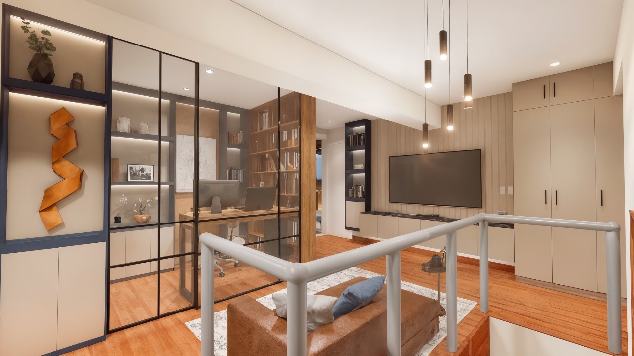 Diseño de interiores de departamento en Miraflores. Área social/oficina y dormitorios de niños.