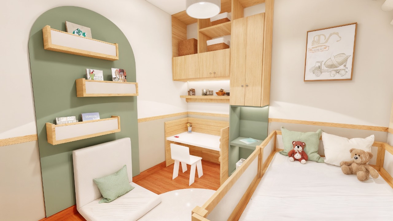 Diseño de interiores de departamento en Miraflores. Área social/oficina y dormitorios de niños.